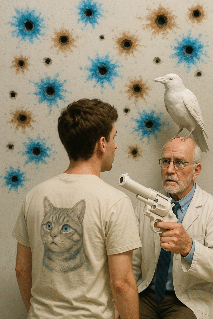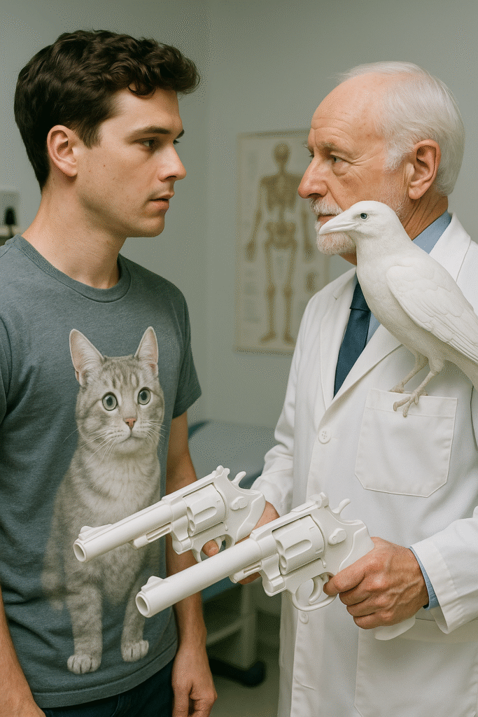He said: Sit up straight. I’m going to summon my ranged weapons. Watch closely — these are called mind-penetrating guns. Start telling me when you feel anything.